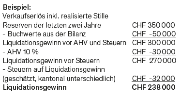 Einzelne Kantone haben abweichende Regelungen. Im Kanton Bern zum Beispiel werden die ersten CHF 260 000 des Liquidationsgewinns so oder so wie eine Vorsorgeleistung besteuert.